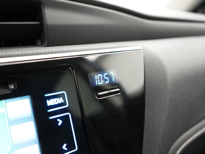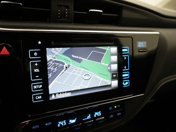 Parkeer en kijk niet om! De achteruitrijcamera doet dat voor je. Je kunt je handen aan het stuur houden en je ogen op de weg. Want het audiosysteem, met DAB-ontvangst, en het full map navigatiesysteem bedien jij vanaf het stuurwiel. Nooit meer te warm of te koud. De electronic climate control zorgt altijd voor de temperatuur die jij kiest. De regensensor regelt zelf de optimale snelheid van de ruitenwissers zodat jij dat niet zelf hoeft te doen. Cruise control is aanwezig; prettig voor de lange einden. Deze Toyota is voorzien van keyless entry, automatisch dimmende binnenspiegel, lederen stuur, centrale deurvergrendeling met afstandsbediening en lederen versnellingspook.