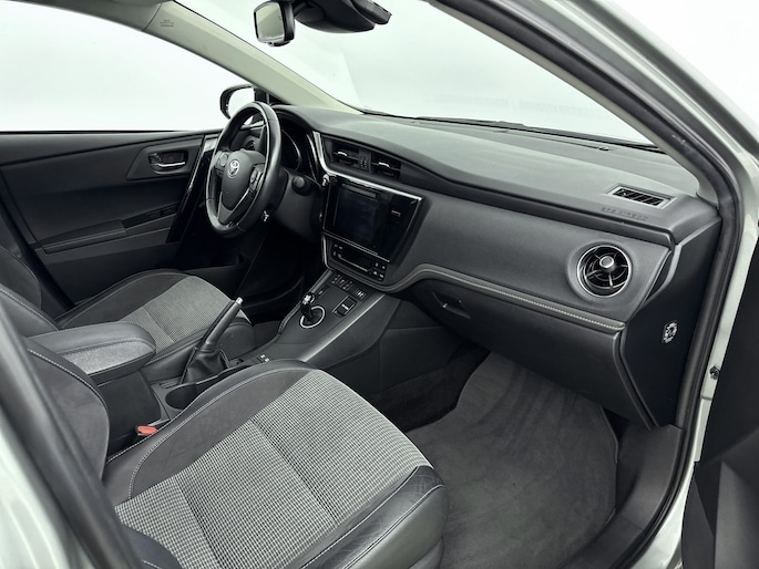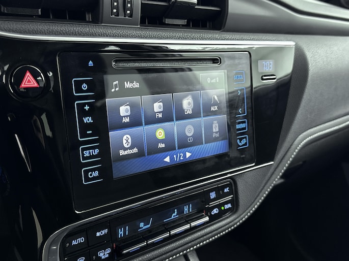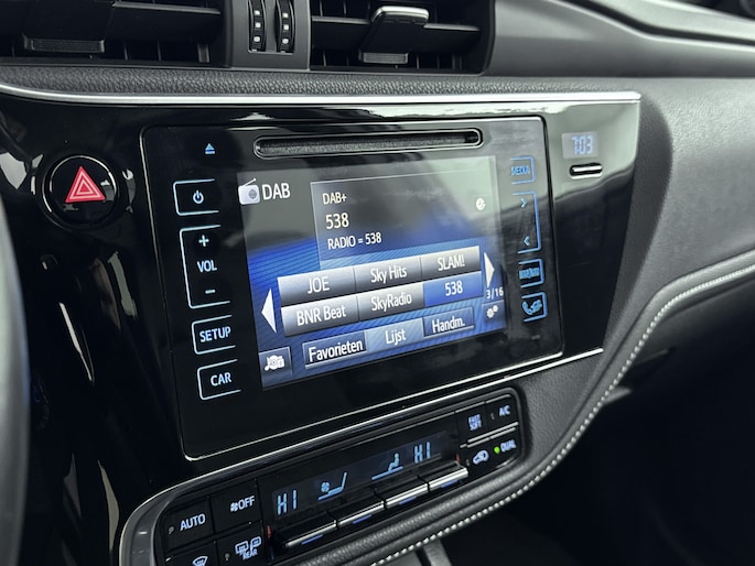 Zoals je mag verwachten van deze Toyota Auris is hij uitgerust met een reeks aan actieve veiligheidssystemen. Bij de veiligheidssystemen van deze auto hoort ook de verkeersbord-detectie. Die leest tijdens het rijden als het ware met je mee en attendeert je op de significante verkeersborden langs en boven de weg. Met het Lane-keeping systeem ga je nooit onbedoeld over de streep. Het risico van een kop-staartbotsing wordt aanzienlijk verminderd door de forward collision warning. Met voorzieningen als hill hold functie en bandenspanningcontrolesysteem, ben je altijd veilig onderweg.