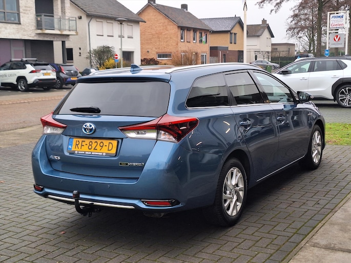 In het moderne verkeer hebt u achter het stuur van de Toyota Auris Touring Sports altijd de controle. Deze auto uit 2017 heeft 126453 kilometer op de teller staan. Deze Toyota Auris Touring Sports is voorzien van een hybride motor. Dat betekent dat de aandrijving wordt geleverd door zowel een brandstofmotor als een elektromotor, die slim samenwerken om zuinig over de weg te gaan. De verwarmbare voorstoelen benadrukken nog maar eens dat we hier te maken hebben met een regelrechte verwenauto voor bestuurder en bijrijder. Het wijdse uitzicht door het glazen panoramadak maakt van elke rit een belevenis. Bij de zeer complete uitrusting van deze auto behoren ook halflederen bekleding, LED-dagrijverlichting, groen getint glas, in delen neerklapbare achterbank, LED-achterlichten en elektrisch verstelbare lendensteun.