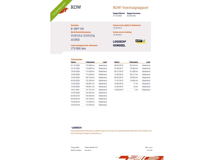 Kilometerstand gecontroleerd