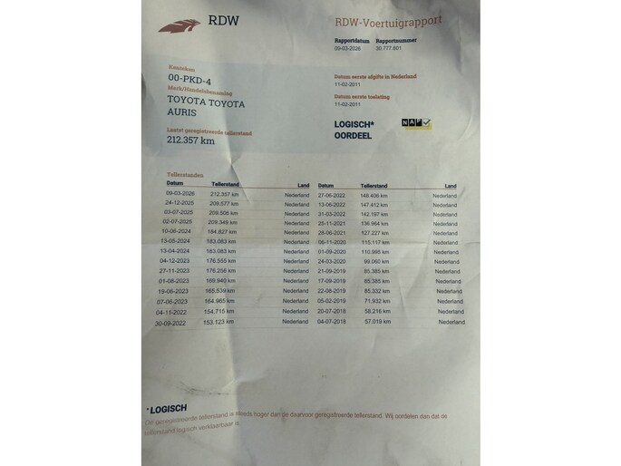 Kilometerstand gecontroleerd