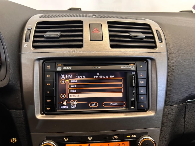 Met de achteruitrijcamera ziet u wat er achter de auto gebeurt. Zo rijdt u moeiteloos achteruit. Beste route, verwachte aankomsttijd: uw eigen navigatiesysteem vertelt u alles! Met de electronic climate control selecteert u de gewenste temperatuur. Het systeem doet de rest. Alle belangrijke audiofuncties zijn regelbaar zonder het stuur los te laten. De knoppen bevinden zich onder uw vingers. Het drukke verkeer eist onderweg al uw aandacht op. Daarom is het goed dat deze Toyota is voorzien van diverse systemen die u assisteren tijdens de rit. Een automatisch inschakelbare verlichting neemt het waar als het donker wordt of gaat schemeren, en schakelt dan automatisch de verlichting in. Op dezelfde manier "ziet" de regensensor de eerste spatjes regen en schakelt dan de ruitenwissers in, en als het harder gaat regenen zet hij de ruitenwissers ook in een snellere stand. De uitrusting van deze Toyota is met cruise control, automatisch dimmende binnenspiegel, lederen stuur, centrale deurvergrendeling met afstandsbediening en lederen versnellingspook behoorlijk compleet.