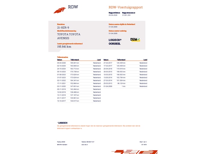 Kilometerstand gecontroleerd