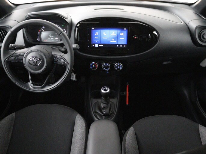 Met de nieuwste technologieën aan boord is deze Toyota in staat om zelf te reageren op potentieel gevaarlijke situaties op de weg. De camera van de verkeersborddetectie herkent verschillende soorten verkeersborden en toont deze op het dashboard. Een camera houdt de juiste koers binnen de rijstrook in de gaten en het Lane-keeping systeem corrigeert bij afwijkingen. Deze Toyota Aygo X is voorzien van Brake Assist, die extra remkracht geeft bij een noodstop. Met voorzieningen als hill hold functie en bandenspanningcontrolesysteem, ben je altijd veilig onderweg.