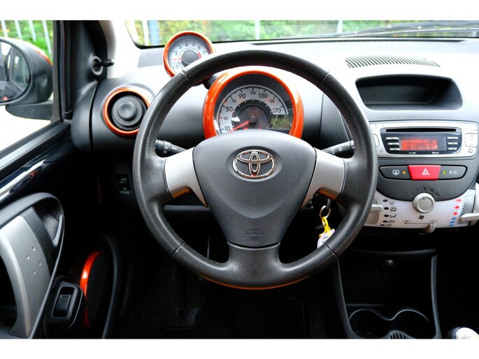 Met een auto als deze Toyota Aygo komt u absoluut goed voor de dag. De aandrijving van deze Toyota wordt verzorgd door een driecilinder motor en een handgeschakelde versnellingsbak. Bij de uitrusting van deze auto horen onder meer 14 inch lichtmetalen velgen, warmtewerend glas, LED-dagrijverlichting en in delen neerklapbare achterbank.