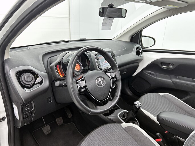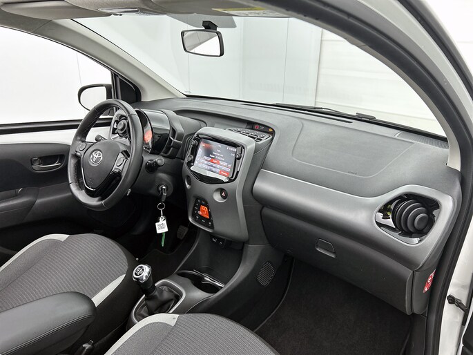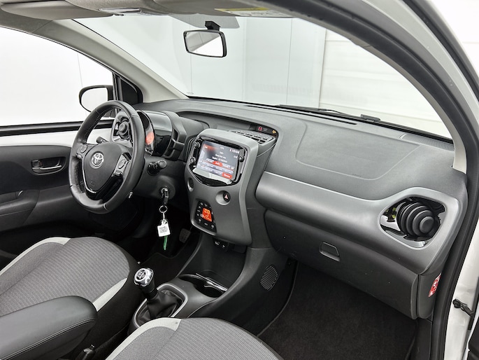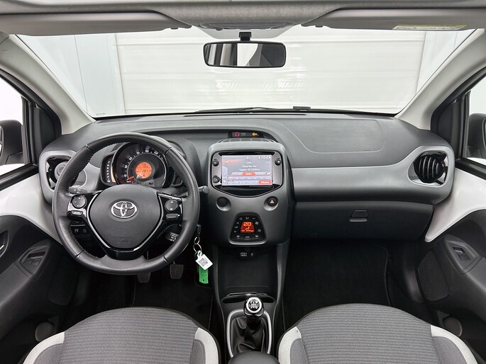 De achteruitrijcamera vergemakkelijkt achteruit inparkeren. Je ziet duidelijk wat er achter de auto gebeurt. Je kunt tijdens de rit jouw ogen steeds op de weg houden, want het audiosysteem (met DAB!) kun je bedienen vanaf het stuur of met spraak. Omdat je nu eenmaal niet overal ogen hebt, is deze Toyota Aygo voorzien van een achteropkomend verkeer waarschuwing die registreert wanneer de afstand tot je achterligger te krap is. Automatische airconditioning regelt volautomatisch de temperatuur. Jij kiest de gewenste temperatuur en het systeem doet de rest. Ook centrale deurvergrendeling met afstandsbediening en verstelbaar stuur horen tot de voorzieningen op deze auto.