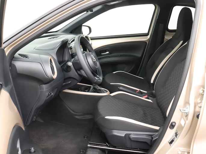 Intelligent en praktisch, de Toyota Aygo X staat bekend om zijn handzaamheid en zijn kwaliteit. De motor is zuinig maar pittig, en maakt een vlotte rijstijl mogelijk. ′s Winters komen de verwarmbare voorstoelen heerlijk van pas. Tot de voorzieningen van deze auto behoren 17 inch lichtmetalen velgen, extra getint glas, metallic lak, elektrisch bedienbare ramen voor, elektrisch bedienbare en verwarmde buitenspiegels, LED-dagrijverlichting en in delen neerklapbare achterbank.
