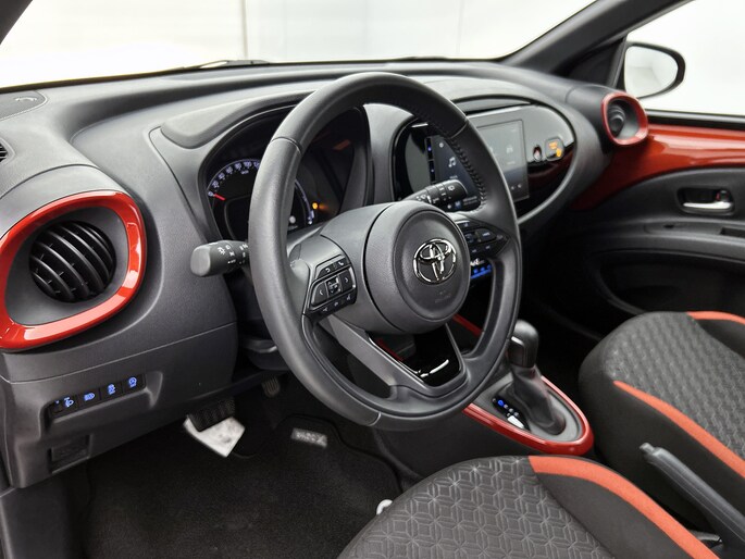 Als je deze Toyota Aygo X wilt wegzetten als een kleine auto, heb je volkomen gelijk. Parkeren was namelijk nog nooit zo gemakkelijk. En dan hebben we het nog niet eens over z'n lage gebruikskosten, wegenbelasting en brandstofverbruik. In deze auto vind je een benzinemotor en een automatische transmissie. Bij de zeer complete uitrusting van deze auto behoren ook 17 inch lichtmetalen velgen, LED koplampen, donker getint glas achter en in delen neerklapbare achterbank.
