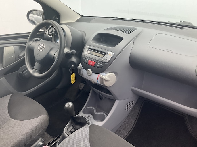 Met een auto als deze Toyota Aygo komt u absoluut goed voor de dag. De aandrijving van deze auto komt voor rekening van een pittige benzinemotor, in combinatie met een handgeschakelde vijfversnellingsbak. Bij de uitrusting van deze Toyota horen onder meer neerklapbare achterbank en snelheidsafhankelijke stuurbekrachtiging.