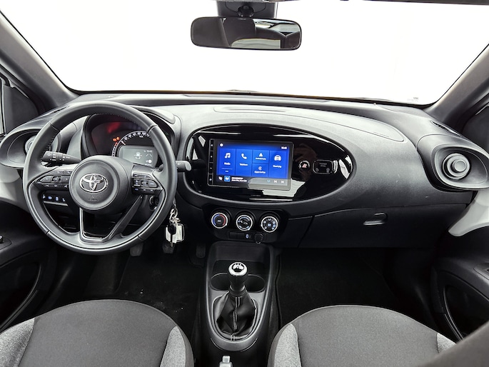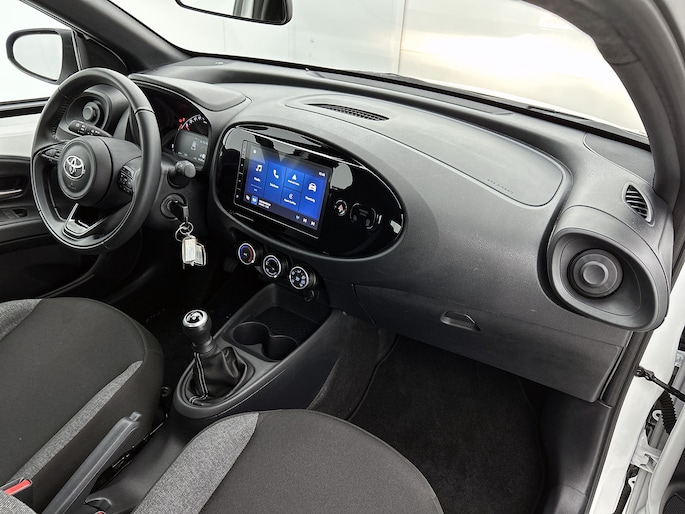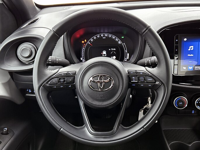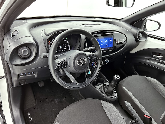 Zelfs een kleine aanrijding kan flinke kosten veroorzaken. Gelukkig laat de achteruitrijcamera precies zien wat er zich achter de auto bevindt en geeft een waarschuwingssignaal. Adaptive cruise control houdt de ingestelde snelheid vast en houdt automatisch afstand tot jouw voorligger. Het eersteklas audiosysteem is voorzien van DAB-radio. Hoge kwaliteit en veel zenderkeus. Aan boord van deze Toyota Aygo X is een achteropkomend verkeer waarschuwing voor extra veiligheid. In een auto als deze mag jij ook airconditioning verwachten. Ook lederen stuur en centrale deurvergrendeling met afstandsbediening zijn aan boord.
