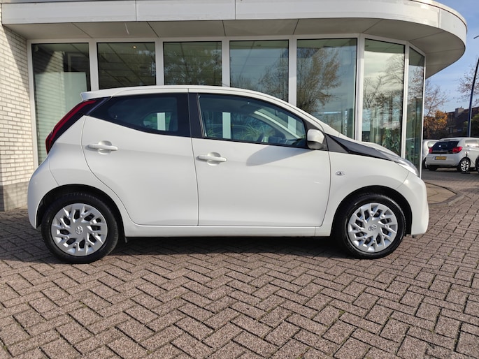 Een vergeten muurtje, een verborgen paaltje? Dat gebeurt niet meer, dankzij de achteruitrijcamera. De bediening van het audiosysteem gebeurt met knoppen op het stuur. Deze Toyota Aygo is voorzien van sensoren aan de achterzijde om een achteropkomend verkeer waarschuwing te geven als de afstand tussen u en een achterligger te klein is. In deze auto kiest u zelf uw ideale temperatuur dankzij de airconditioning. Wat u ook in deze auto kunt vinden zijn lederen stuur, centrale deurvergrendeling met afstandsbediening en lederen versnellingspook.