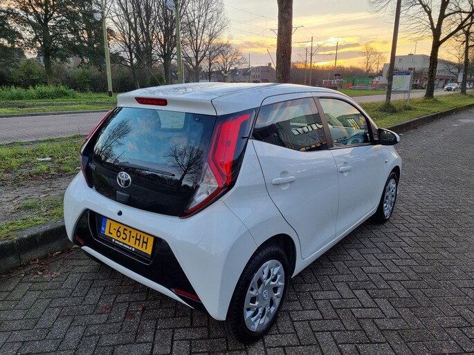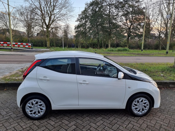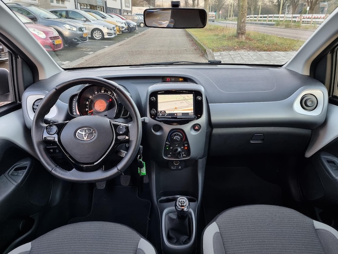 Bij het inparkeren laat de achteruitrijcamera precies zien hoeveel meter... decimeter... centimeter ruimte er nog is! Een optie die de veiligheid verhoogt, is de bediening vanaf het stuur van het audiosysteem. Als u wilt kunt u het zelfs met uw stem bedienen. Ook over uw schouder ziet u onderweg niet alles wat er aan de achterzijde gebeurt. Daarom heeft deze Toyota Aygo een achteropkomend verkeer waarschuwing. In de zomer zit u ontspannen achter het stuur dankzij de ingebouwde airconditioning. De uitrusting van deze auto is met lederen stuur en versnellingspook en centrale deurvergrendeling met afstandsbediening behoorlijk compleet.