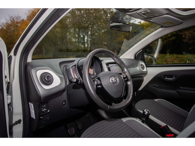 Deze Toyota Aygo is rijk uitgerust met héél veel slimme opties die rijcomfort en veiligheid verhogen. Denk aan airco, Hill Hold-functie, startblokkering, EBD, ESP, ABS, TCS, multifunctioneel stuur, Bluetooth en telefoonintegratie premium. De achteruitrijcamera en achteropkomend verkeer waarschuwing maken parkeren en manoeuvreren een eitje. Compact, comfortabel en super compleet!
