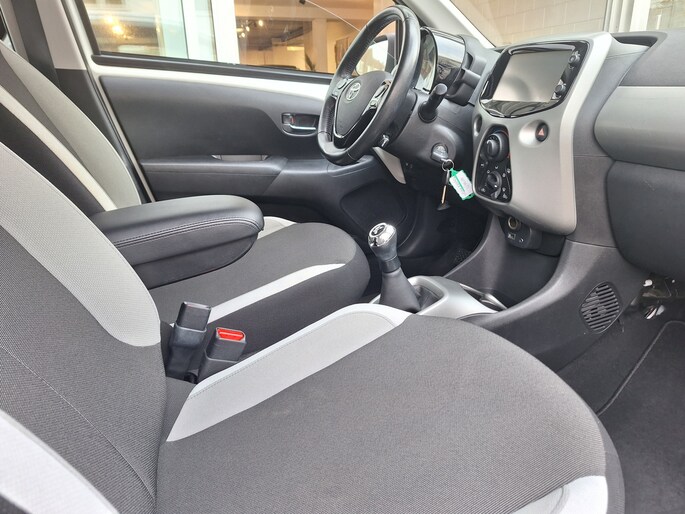 Intelligent en praktisch, de Toyota Aygo staat bekend om zijn handzaamheid en zijn kwaliteit. We hebben het hier over een dealer onderhouden auto uit november 2017 met een tellerstand van 74.837 kilometer. Met de pittige benzinemotor haalt u veel kilometers uit een volle tank. Bij de rijke uitrusting horen ook zwarte lichtmetalen velgen, LED-dagrijverlichting, autotelefoon met bluetooth, getint glas en in delen neerklapbare achterbank.