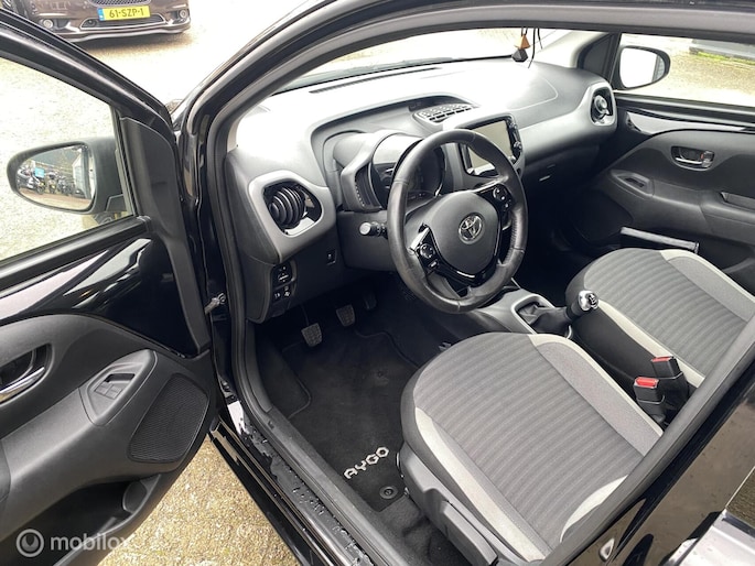Stijlvol en veelzijdig, dat zijn misschien wel de belangrijkste kenmerken van de Toyota Aygo. Dit exemplaar is bovendien voorzien van verschillende systemen die het autorijden aangenamer en veiliger maken. De aandrijving van deze Toyota wordt verzorgd door een driecilinder benzinemotor en een handgeschakelde versnellingsbak. Het lederen interieur is een stijlvolle extra van deze Toyota Aygo. De uitmonstering van deze auto wordt gecompleteerd door onder meer 15 inch lichtmetalen velgen, LED-dagrijverlichting, donker getint glas achter, in delen neerklapbare achterbank en LED-achterlichten.