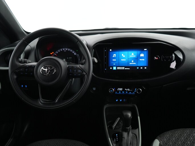 Innovatief design, doordachte techniek en een hoog kwaliteitsniveau zijn typische kenmerken van de Japanse automerken. Dat is te merken aan deze Toyota Aygo X, een auto uit 2024 die 16298 kilometer heeft gelopen. Hij heeft een benzinemotor en een automatische transmissie. U wordt in deze auto ook getrakteerd op 18 inch lichtmetalen velgen, LED koplampen, extra getint glas en in delen neerklapbare achterbank. Afstand schatten bij het achteruitrijden? Niet nodig. U weet het precies, dankzij de achteruitrijcamera. Als u de adaptive cruise control inschakelt, regelt de auto zelf de snelheid en de afstand tot de auto voor u. Appen met uw auto? Geen probleem. U kunt van overal contact opnemen, de functies controleren en activeren. U bedient 'm met remote services. Naast de routeinformatie van het full map navigatiesysteem kunt u muziek via het audiosysteem ook online beluisteren via bluetooth. Geen gehannes met snoertjes en kabels, u laadt uw smartphone automatisch op met de draadloze telefoonlader. Deze Toyota is voorzien van achteropkomend verkeer waarschuwing, automatische airconditioning, sportstuur met schakelpaddels, DAB ontvangst, regensensor en centrale deurvergrendeling met afstandsbediening. Tijdens de rit wordt u als bestuurder ondersteund door verschillende systemen die de weg en uw omgeving in de gaten houden. Verkeersborddetectie herkent tijdelijke en permanente verkeersborden langs en boven de weg. Het Lane-keeping systeem garandeert dat u zich niet onverhoeds buiten de lijnen van de rijstrook begeeft. Forward collision warning waarschuwt bij een dreigende aanrijding en vermindert de gevolgen van een ongeval. Met voorzieningen als hill hold functie, brake assist en bandenspanningcontrolesysteem, bent u altijd veilig onderweg. Er is nog meer te vertellen over deze auto, maar dan moet u hem ook zelf ervaren. U bent van harte welkom om hem te bekijken en om een proefrit te maken.