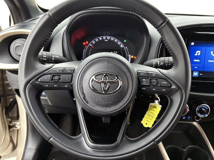 Deze Toyota Aygo X is wereldklasse in stadsformaat. Met zijn pittige benzinemotor stuur jij deze auto gemakkelijk en vlot door het verkeer. Bij de uitrusting van deze Toyota horen onder meer LED-dagrijverlichting en in delen neerklapbare achterbank.