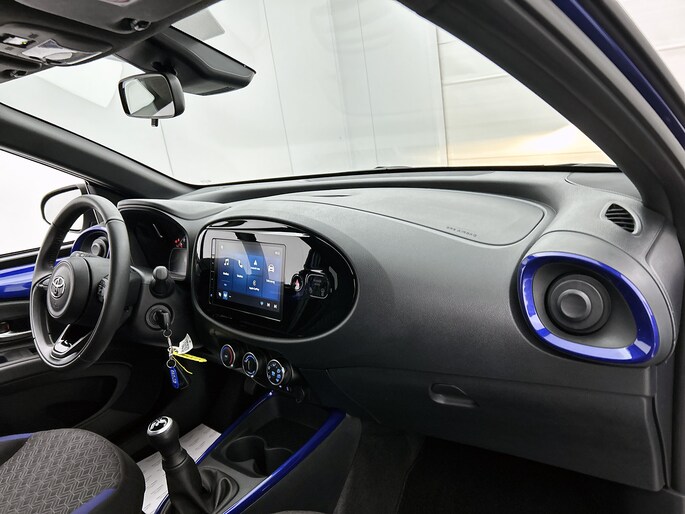 Hij zorgt voor een ontspannen rijervaring, deze Toyota Aygo X. Het is een auto uit 2025, op de teller staat een kilometerstand van 18674. De motor is zuinig maar pittig, en maakt een vlotte rijstijl mogelijk. Ook LED-dagrijverlichting en in delen neerklapbare achterbank zijn aan boord.