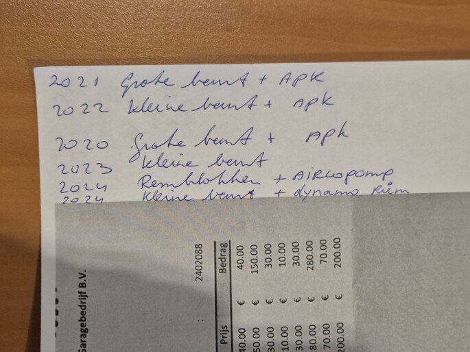 Onderhoudsboekjes: Aanwezig