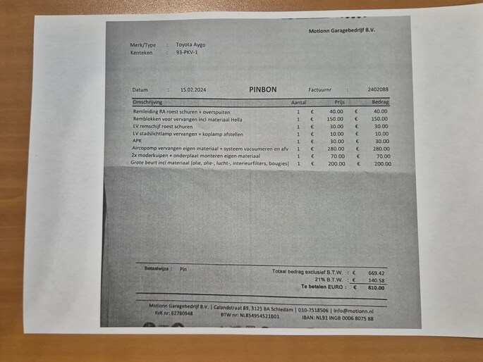 • Afleverbeurt conform onderhoudsschema met volle tank.