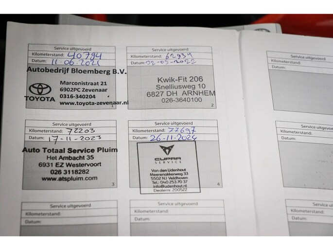 Onderhoudsboekjes: Aanwezig