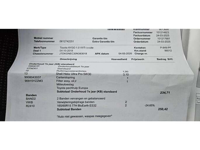 Gratis APK + Kleine beurt (zonder meerprijs): Auto word afgeleverd met nieuwe APK en Kleine onderhoud 's beurt.