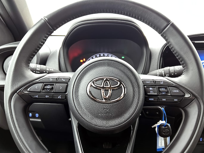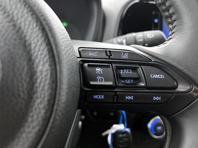 De hoogwaardige achteruitrijcamera en het display met hoge resolutie zorgen dat helemaal niets je meer ontgaat van wat er achter de auto gebeurt. Adaptive cruise control houdt de ingestelde snelheid vast en houdt automatisch afstand tot jouw voorligger. De achteropkomend verkeer waarschuwing geeft een signaal als degene achter je te dicht op jou zit. Ook handig en veilig bij het wisselen van rijbaan. De DAB-ontvanger zorgt voor een ruime keuze uit digitale radiozenders en een kristalheldere geluidsweergave. En natuurlijk is er ook gedacht aan airconditioning. Met lederen stuur en centrale deurvergrendeling met afstandsbediening is deze Toyota helemaal compleet.