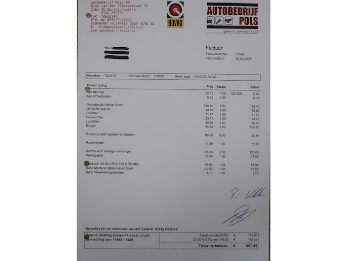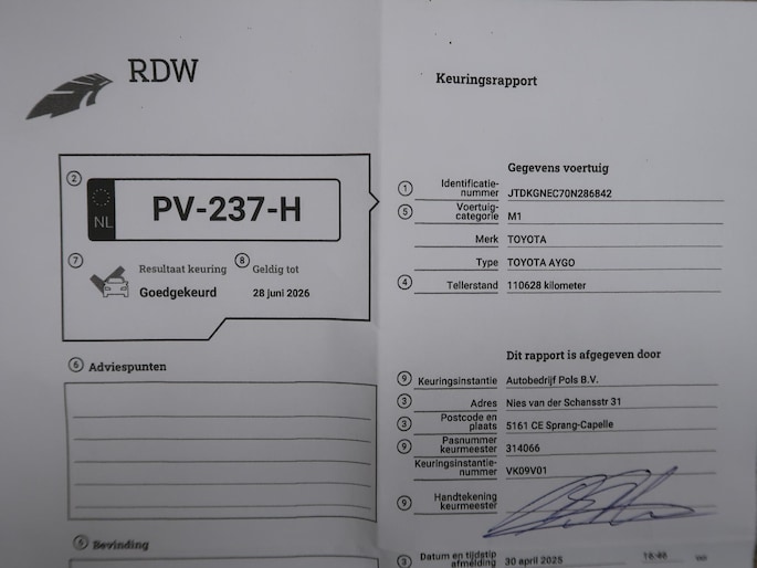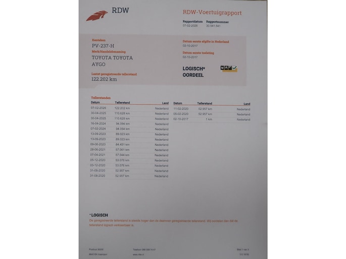 Kilometerstand gecontroleerd