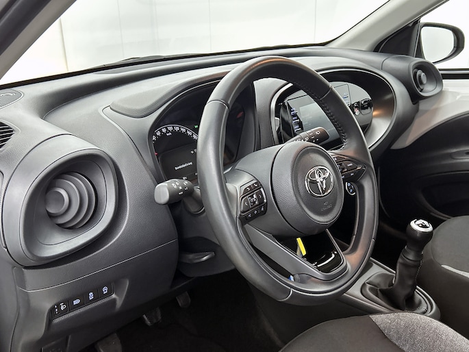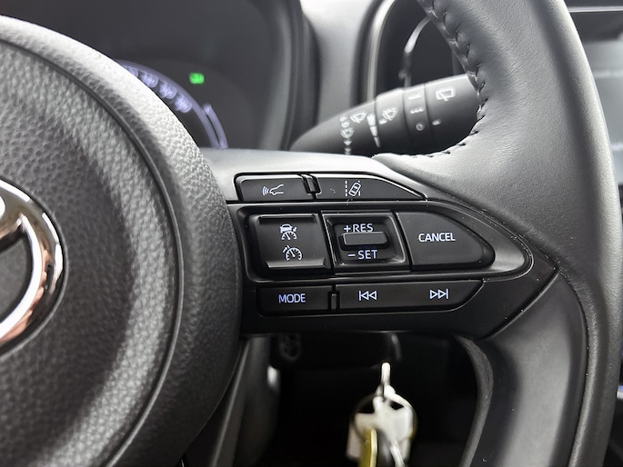 Zoals je mag verwachten van deze Toyota Aygo X is hij uitgerust met een reeks aan actieve veiligheidssystemen. Verkeersborddetectie herkent tijdelijke en permanente verkeersborden langs en boven de weg. Deze Toyota Aygo X is ook behulpzaam als het gaat om een rechte koers. Het Lane-keeping systeem signaleert en corrigeert als je onbedoeld de rijstrooklijnen dreigt te overschrijden. Forward collision warning waarschuwt voor een kop-staart botsing. De auto is ook uitgerust met hill hold functie, brake assist en bandenspanningcontrolesysteem.