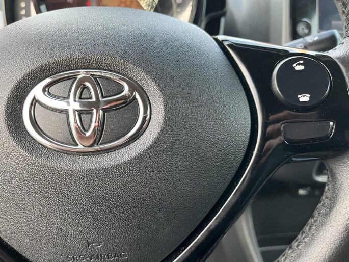 Soepel inparkeren gaat gemakkelijker dan u verwacht dankzij de achteruitrijcamera. In deze Aygo vindt u niet alleen schakelaars op het stuur om het audiosysteem te bedienen, maar er is ook spraakbediening. De sensoren van de achteropkomend verkeer waarschuwing registreren wat er gebeurt in de dode hoeken en achter u. U krijgt meteen een waarschuwing als u een achterligger over het hoofd ziet. Natuurlijk is er in deze auto airconditioning aanwezig. Ook is de Toyota uitgerust met: lederen stuur en versnellingspook en centrale deurvergrendeling met afstandsbediening.