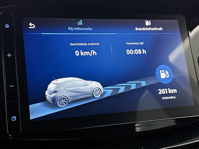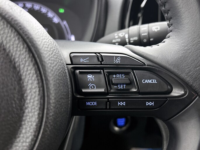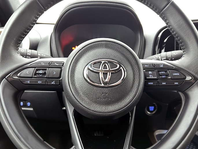 Zoals je mag verwachten van deze Toyota Aygo X is hij uitgerust met een reeks aan actieve veiligheidssystemen. Onderweg zorgt verkeersborddetectie ervoor dat je geen waarschuwingsbord mist. Onbedoeld buiten de rijstrook raken wordt voorkomen door het Lane-keeping systeem. Het forward collision warning-systeem is constant alert en detecteert via sensor de afstand tot voorliggers. Wordt die te klein, dan volgt een automatische waarschuwing. Ook helpen het hill hold functie, brake assist en bandenspanningcontrolesysteem, jouw rit tot een veilige rit te maken.