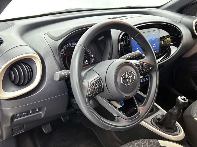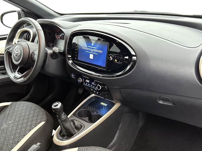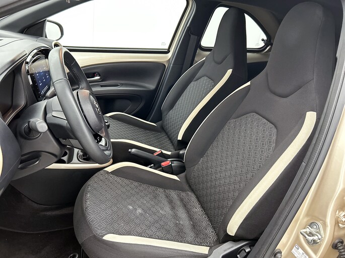 OK, hij is niet groot. Maar je zal staan te kijken van het comfort dat deze Toyota Aygo X te bieden heeft. Elke centimeter ademt ruimte! Zijn compacte motor geeft deze Toyota uitstekende prestaties, maar zorgt voor een bescheiden brandstofverbruik. 's Winters op pad gaan kan een behoorlijke uitdaging zijn. Daarom is deze Toyota Aygo X voorzien van weldadige verwarmbare voorstoelen. Natuurlijk behoren 18 inch lichtmetalen velgen, LED koplampen, halflederen bekleding, donker getint glas achter en in delen neerklapbare achterbank ook tot de uitrusting van deze complete auto.