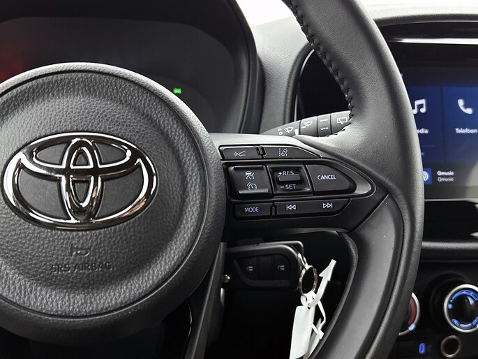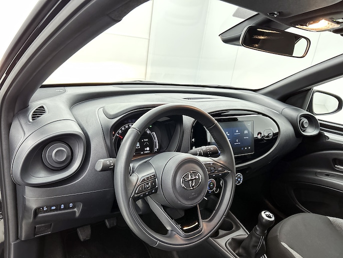Kommaar-kommaar-kommaar, aldus de achteruitrijcamera. Iedere centimeter vrije ruimte komt haarscherp in beeld. Schadevrij inparkeren maar! Met adaptive cruise control houdt de auto zelfstandig afstand tot jouw voorligger. Een veiligheidsverhogende optie waarmee je comfortabel onderweg bent. Ook over je schouder zie je onderweg niet alles wat er aan de achterzijde gebeurt. Daarom heeft deze Toyota Aygo X een achteropkomend verkeer waarschuwing. Met de DAB-ontvanger heb jij keuze uit talloze digitale radiozenders met de allerhoogste geluidskwaliteit. Het spreekt voor zich dat jij in deze auto ook airconditioning aantreft. De uitrusting van deze auto is met lederen stuur en centrale deurvergrendeling met afstandsbediening behoorlijk compleet.