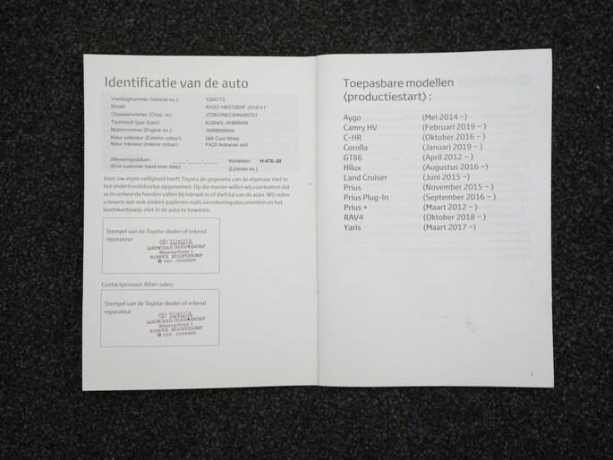 Optioneel afleverpakket (zonder meerprijs): Toyota Approved: • 12 maanden "Toyota approved" garantie (Tot 10 jaar verlengbaar*) • 24/7 Pechhulp Europa dekking • Garantiedekking heel NL • 14 dagen tot max. 1000 KM omruilgarantie • Tenaamstelling/vrijwaring • Reiniging in- & exterieur • Hybride Zekerheid Controle • Toyota kwaliteitschecklist • Gecontroleerde KM-stand • Vloeistoffencheck & bijvullen • Poetsbeurt • Onderhoud conform schema • Nieuwe APK • Gratis vervangend vervoer Ja** *Informeer naar de geldende voorwaarden **Bij reparaties die langer dan 24 uur duren. Gratis vervangend vervoer kent een maximale duur van 72 uur.