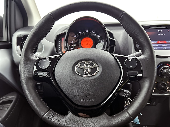 Hoeveel ruimte heeft u nog bij het inparkeren? De achteruitrijcamera brengt helder in beeld wat zich achter de auto bevindt en geeft een geluidssignaal. Dankzij de spraaksturing bedien jij verschillende functies zonder jouw handen van het stuur te halen. Deze Toyota Aygo is voorzien van sensoren aan de achterzijde om een achteropkomend verkeer waarschuwing te geven als de afstand tussen jou en een achterligger te klein is. Het hele jaar door zorgt airconditioning voor een prettige temperatuur. Met centrale deurvergrendeling met afstandsbediening en verstelbaar stuur is deze auto helemaal compleet.