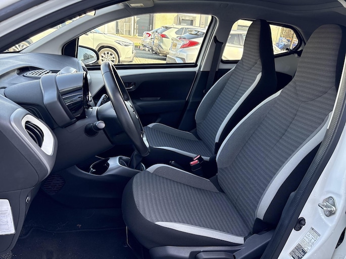 Zoals u mag verwachten van deze Toyota Aygo is hij uitgerust met een reeks aan actieve veiligheidssystemen. Brake assist verhoogt de remdruk in een noodsituatie zodat u sneller stil staat. Verder is deze auto uitgerust met hill hold functie en bandenspanningcontrolesysteem.