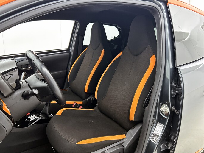 Als je deze Toyota Aygo wilt wegzetten als een kleine auto, heb je volkomen gelijk. Parkeren was namelijk nog nooit zo gemakkelijk. En dan hebben we het nog niet eens over z'n lage gebruikskosten, wegenbelasting en brandstofverbruik. Voor de aandrijving van deze auto zorgt een compacte motor. Ook 15 inch lichtmetalen velgen, LED-dagrijverlichting, donker getint glas achter, in delen neerklapbare achterbank en LED-achterlichten horen tot de voorzieningen op deze auto.