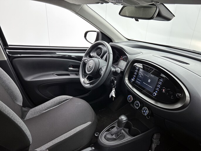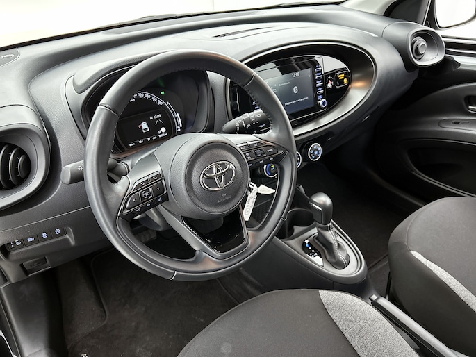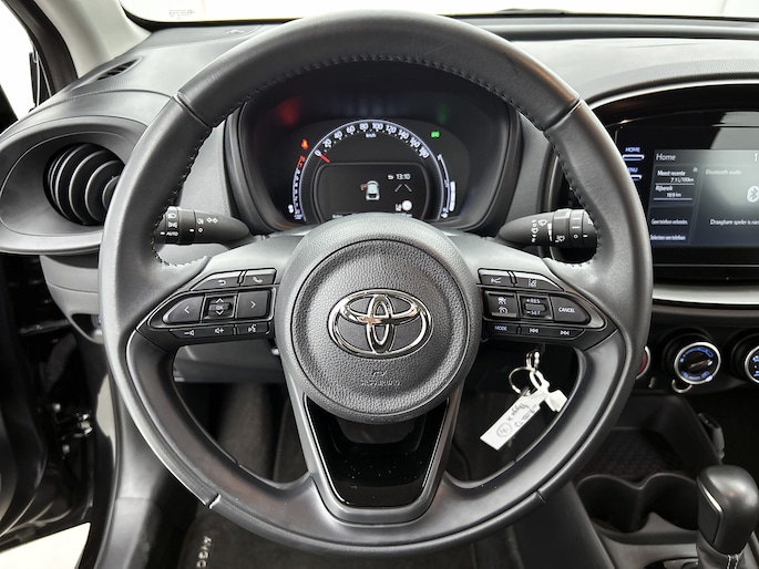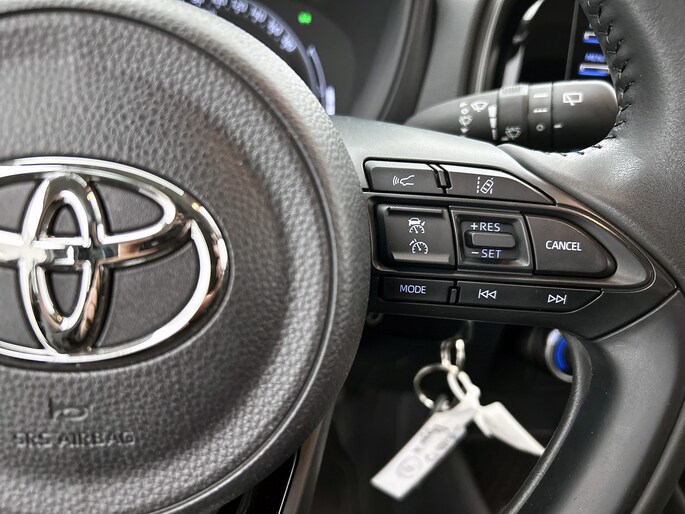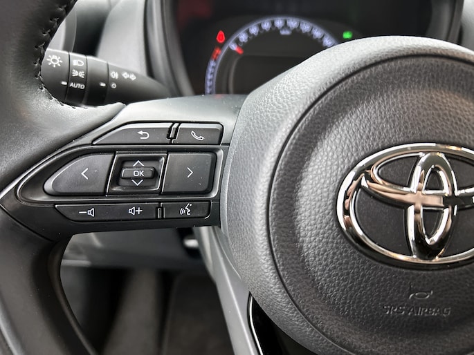 Met de achteruitrijcamera zie jij precies wat er achter de auto gebeurt. Adaptive cruise control houdt de ingestelde snelheid vast en houdt afstand tot het voertuig voor je. Deze auto gaat met je in gesprek. Hij vertelt met behulp van remote services alles over de status van diverse onderdelen en laat zich desgevraagd ook activeren. Gewoon via je smartphone. Omdat je nu eenmaal niet overal ogen hebt, is deze Toyota Aygo X voorzien van een achteropkomend verkeer waarschuwing die registreert wanneer de afstand tot je achterligger te krap is. Voor storingvrije digitale radio-ontvangst zorgt de DAB-ontvanger. Ook is de Toyota uitgerust met: airconditioning, lederen stuur en centrale deurvergrendeling met afstandsbediening.