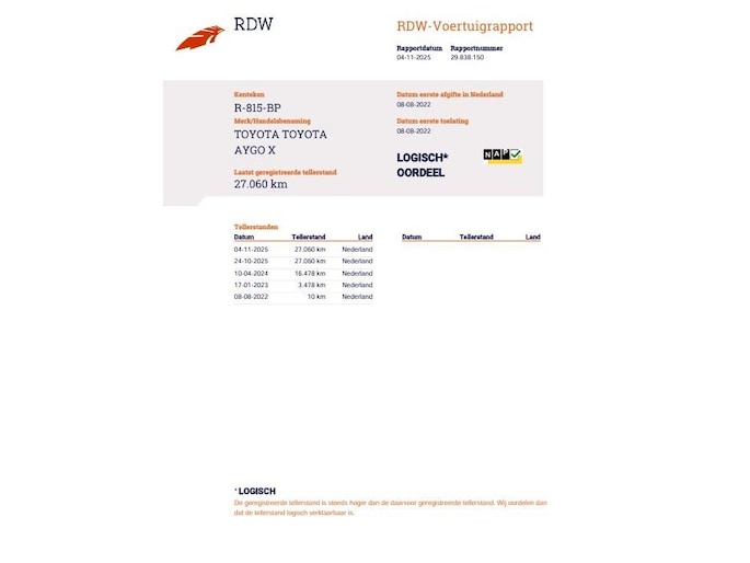Kilometerstand gecontroleerd