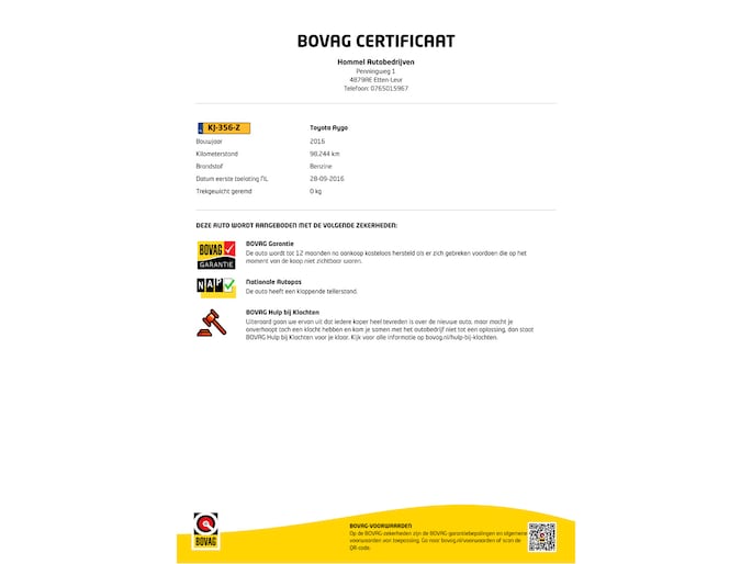 Kilometerstand gecontroleerd