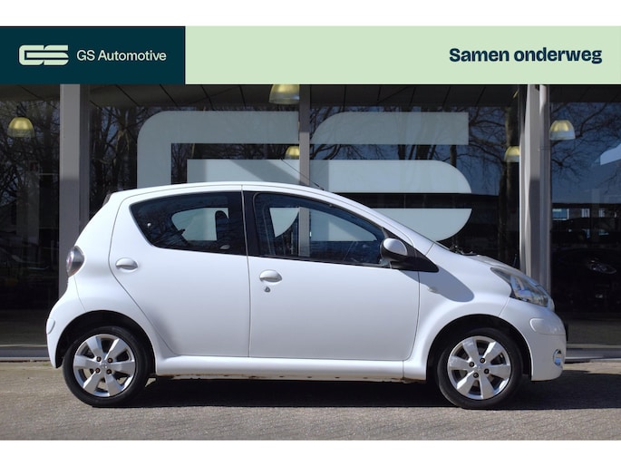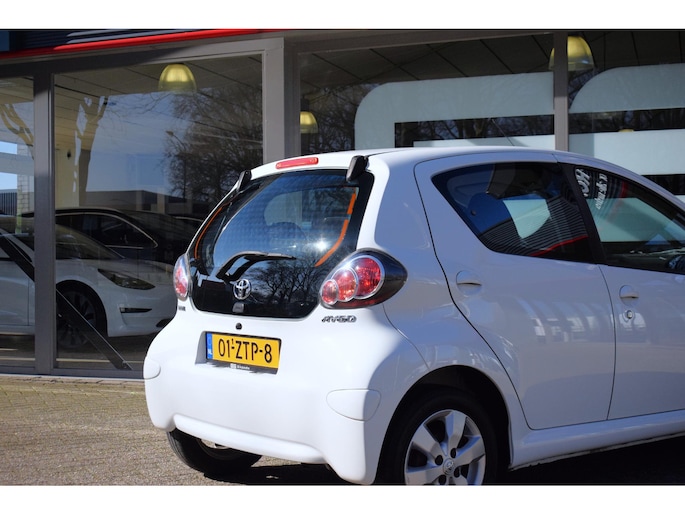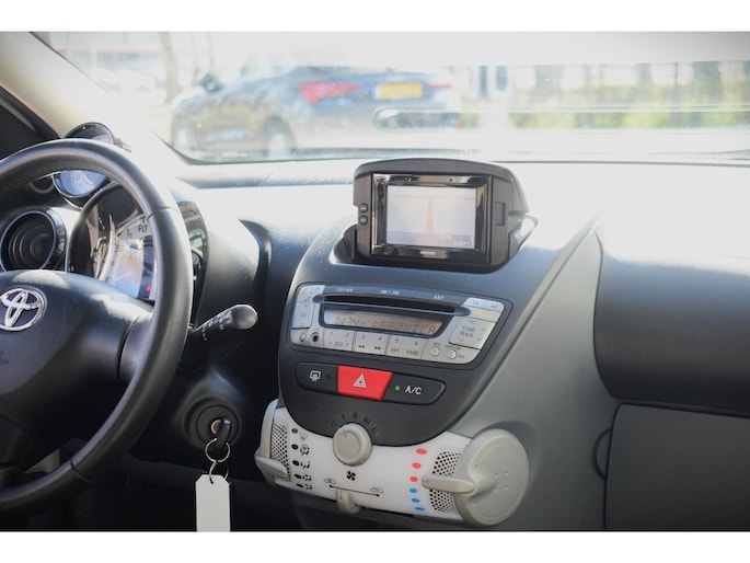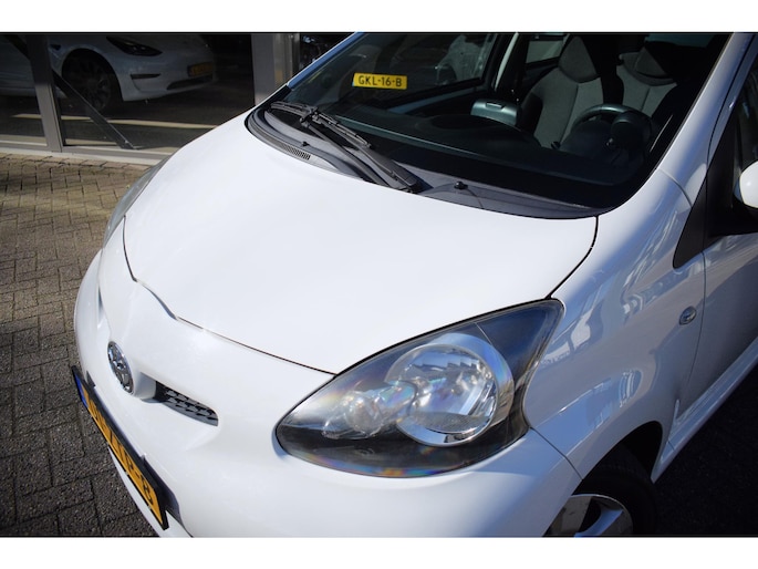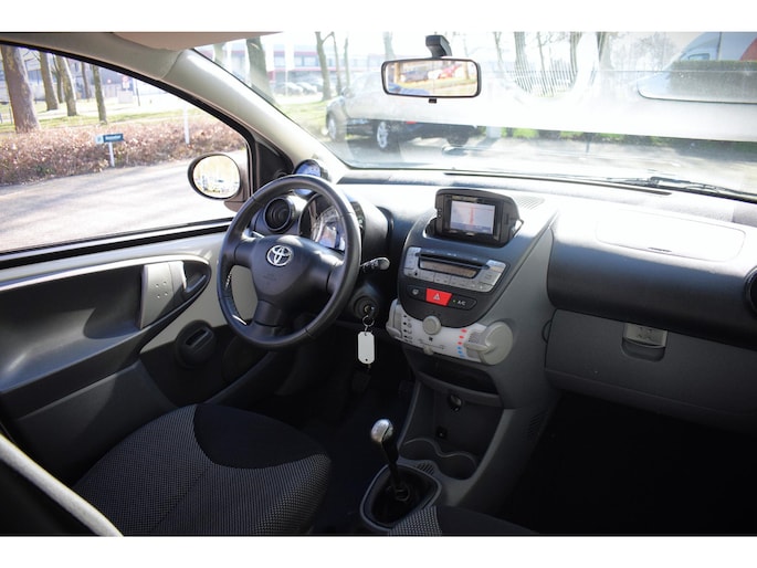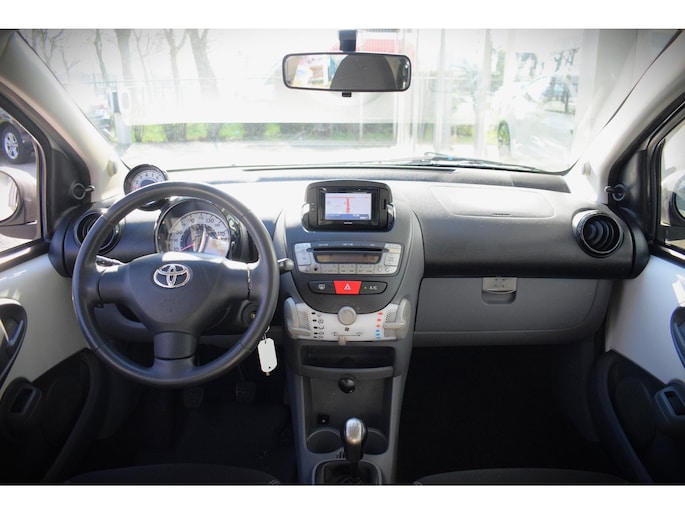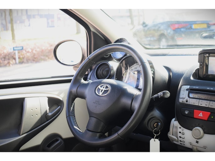 In deze Toyota Aygo lijken alle parkeervakken meteen een stuk groter. Met zijn pittige benzinemotor stuurt u deze auto gemakkelijk en vlot door het verkeer. De uitmonstering van deze auto wordt gecompleteerd door onder meer 14 inch lichtmetalen velgen, extra getint glas en in delen neerklapbare achterbank.