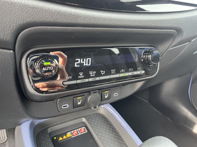 Niet alleen van buiten, ook van binnen is de Toyota Aygo X Hybrid een genot om in te rijden. Het interieur is stijlvol en comfortabel ingericht, met aandacht voor details die het verschil maken. Daarnaast beschikt deze auto over handige features zoals park sensors, waarmee inparkeren een fluitje van een cent wordt. Ook is de auto voorzien van airconditioning, zodat je altijd kunt genieten van een aangename temperatuur in het voertuig.