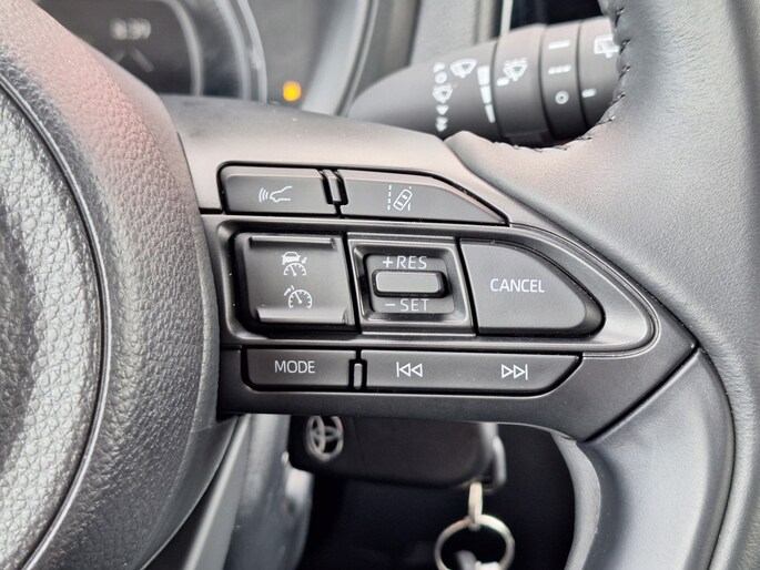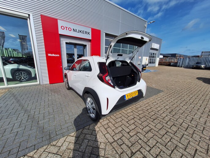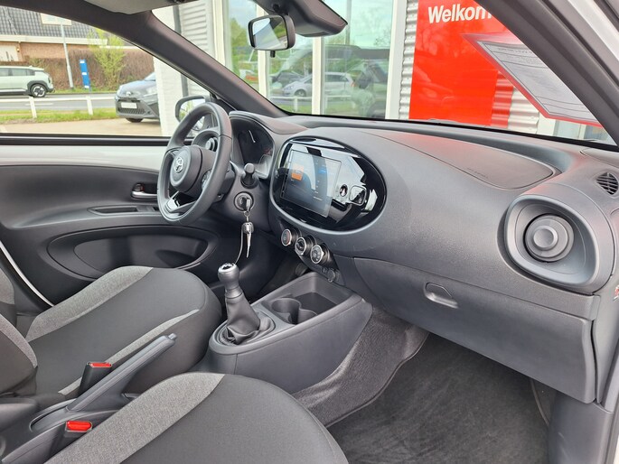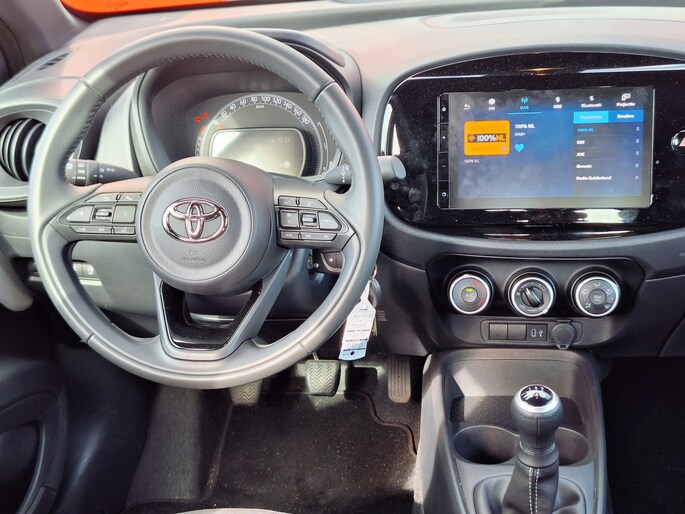 Een onopvallend paaltje of een overstekend kind achter de auto brengt risico's met zich mee. Gelukkig laat de achteruitrijcamera feilloos zien of alles veilig is. Als u de adaptive cruise control inschakelt, regelt de auto zelf de snelheid en de afstand tot de auto voor u. Aan boord van deze Toyota Aygo X is een achteropkomend verkeer waarschuwing voor extra veiligheid. Geniet van een ruime selectie digitale radiostations met de DAB-ontvanger. In deze auto kiest u zelf uw ideale temperatuur dankzij de airconditioning. De uitrusting van deze auto is met lederen stuur en centrale deurvergrendeling met afstandsbediening behoorlijk compleet.
