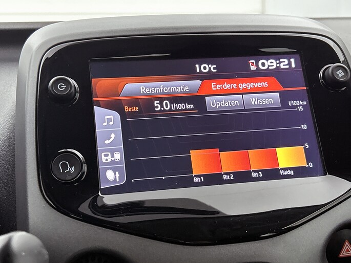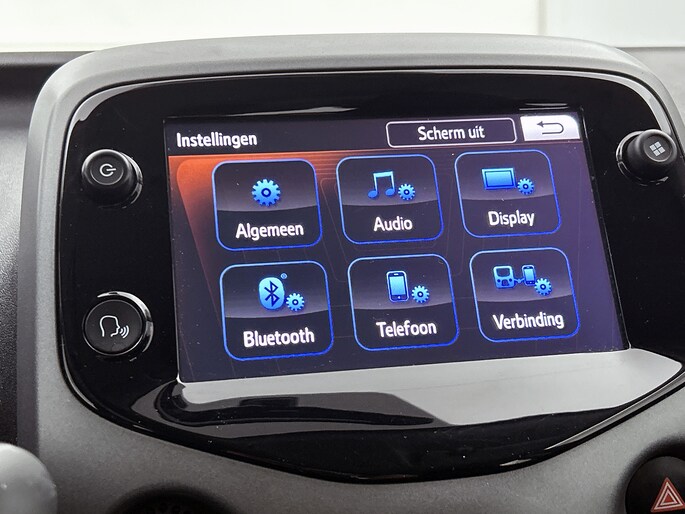 Ook achter de auto geen verrassingen bij het inparkeren. Daarvoor zorgt de achteruitrijcamera. De achteropkomend verkeer waarschuwing bewaakt de afstand tot achterliggers en geeft een signaal als er te weinig ruimte is. Je hoeft het stuur geen moment los te laten om de audio aan te passen. De audiobediening op het stuur is een veilige en praktische oplossing. Ja, airconditioning is er natuurlijk ook in deze auto. Extra opties op deze auto zijn: centrale deurvergrendeling met afstandsbediening en verstelbaar stuur.