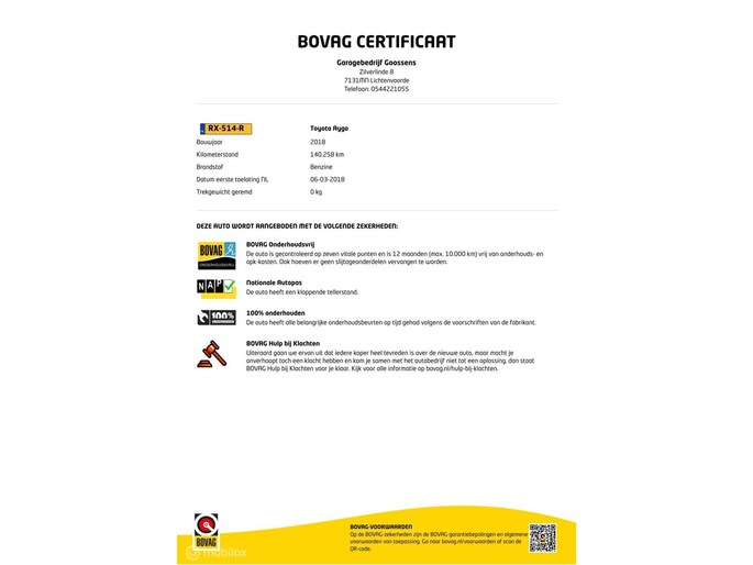 Uitgebreide BOVAG garantie is mogelijk tegen een meerprijs van €499.