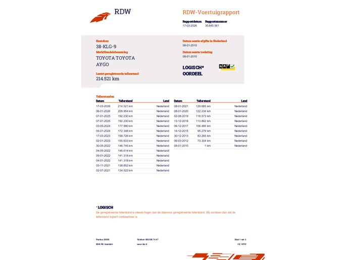 Kilometerstand gecontroleerd
