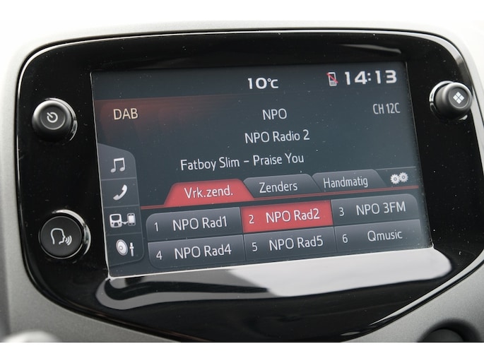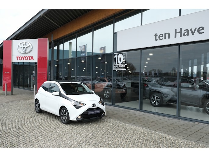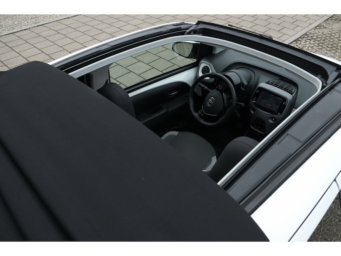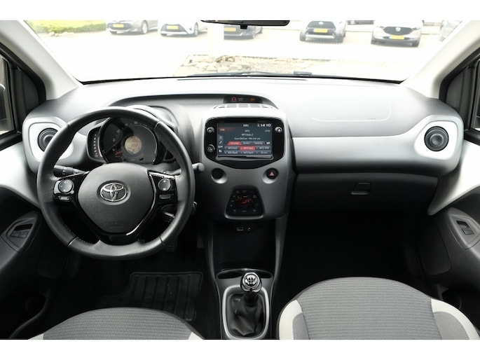 TOYOTA AYGO 1.0 VVT-i x-joy Cabriodak | Airconditioning, automatisch | Schemersensor | 15” lichtmetalen velgen ‘zwart-gepolijst’ | Cabriodak, elektrisch bedienbaar zwart (alleen bij x-joy cabrio) | Mistlampen vóór | Privacy glass | Achteruitrijcamera | Toerenteller | 50/50 neerklapbare achterbank | Bekleding, stof antraciet/wit/zilver | Centraal instrumentenpaneel en omlijsting console box grijs | Dashboardpanelen grijs | In hoogte verstelbare bestuurdersstoel | Lederen pookknop | Lederen stuurwiel met pianozwarte delen | Omlijsting ventilatieroosters in kleur carrosserie | Walk-in systeem met geheugenfunctie op voorstoelen (alleen op 3-deurs) | Achterbumperinsert in pianozwart (zilver bij exterieurkleur zwart 211) | Buitenspiegels in kleur carrosserie | Buitenspiegels, elektrisch verstelbaar en verwarmd | Cabriodak, elektrisch bedienbaar zwart (alleen bij x-play cabrio) | Deurgrepen in kleur carrosserie | Zwarte B-stijl | 4 speakers | Bluetooth® connectiviteit (handsfree bellen én muziekstreaming) | DAB+ tuner | Radio met AUX en USB-aansluiting | Stuurwiel met bediening voor audio en telefoon | Airconditioning | Centrale vergrendeling met afstandsbediening | Elektrisch bedienbare ramen vóór | Inklapbare sleutel | Bumpers in kleur van de carrosserie | Klapramen achter | LED verlichting achter | LED-dagrijverlichting en stadslicht | 12V aansluiting vóór | Bekleding, stof-antraciet | Neerklapbare achterbank met instelbare hoofdsteunen (2x) | Opbergvakken met flessenhouders in de portieren | Stuurwiel in hoogte verstelbaar | Van binnenuit bedienbare buitenspiegels en tankdopklep | Zonnekleppen met spiegel en lampje | Instrumentenpaneel met o.a. buitentemperatuurmeter, schakelindicator, waarschuwing vergeten gordel voorstoelen en achterbank | ABS met EBD (elektronische remkrachtverdeling) | Airbag bestuurder, airbag passagier, zij-airbags en gordijnairbags | Airbag passagierszijde uitschakelbaar | Bandenspanningscontrolesysteem | Brake Assist (BA) | Elektrische stuurbekrachtiging | Hill-start Assist Control (HAC) | ISOFIX kinderstoelbevestiging (2x) | Snelheidsbegrenzer | Thuiskomer reservewiel | Traction Control (TRC) | Uitschakelbaar Stop & Start systeem | Vehicle Stability Control (VSC) | Tot 10 jaar garantie |