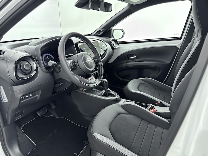 Het personaliseren van jouw cockpitinterface is mogelijk met het digitale dashboard in deze auto. Een handige optie is de achteruitrijcamera. Achteruitrijden, inparkeren en manoeuvreren gaat gemakkelijker dan ooit. Adaptive cruise control is een comfortabele en veilige optie. Het systeem reguleert de snelheid en houdt automatisch afstand tot jouw voorligger. Deze Toyota Aygo X is voorzien van remote services. Via je smartphone bedien je diverse functies ook op afstand en krijgt je informatie over de status van je auto. Voor wie hoge eisen stelt aan geluid en akoestiek, is deze auto voorzien van een high performance audiosysteem. En dan is deze auto ook nog eens voorzien van navigatiesysteem, kruisend verkeer detectie, automatische airconditioning, draadloos opladen, DAB ontvangst en regensensor.