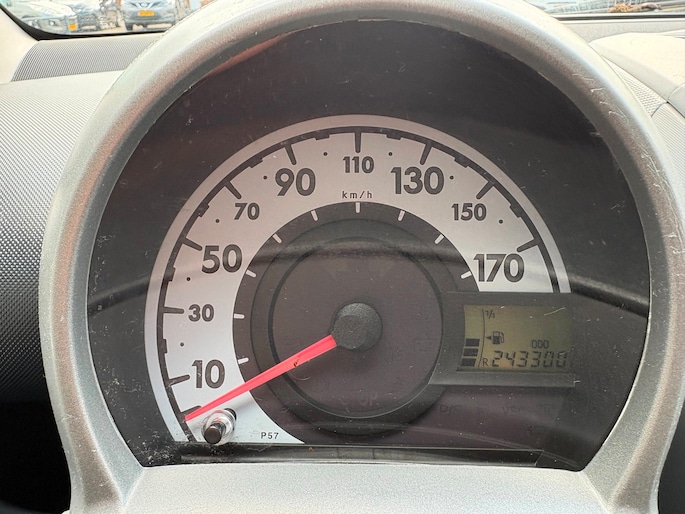 Deze Toyota Aygo komt uit 2011, werd geleverd van 01-01-2010 tot 31-03-2012 en kostte toen € 9.180,-. Deze originele Nederlandse personenauto staat sinds 2011 op kenteken, is voorzien van een benzine-motor, heeft een maximum vermogen van 50 kW (68 PK) en een cilinderinhoud van 998 cc.