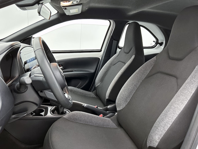 In de Toyota Aygo X heeft jouw veiligheid en die van jouw omgeving prioriteit. Dat de auto steeds meer taken van de bestuurder overneemt, merk je bijvoorbeeld aan het systeem voor verkeersbord-detectie in deze Toyota. Het Lane-keeping systeem registreert permanent of je binnen de lijnen van de rijstrook blijft; dwaal je onbedoeld af, dan waarschuwt het systeem en corrigeert de koers. Deze Toyota Aygo X is voorzien van Brake Assist, die extra remkracht geeft bij een noodstop. Met voorzieningen als hill hold functie en bandenspanningcontrolesysteem, ben je altijd veilig onderweg.
